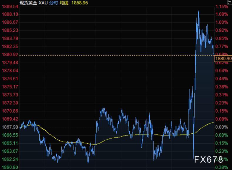 金价周三大幅反弹,现货黄金一度涨逾1%,刷新近二日高点至1889.54美元/按盎司,因美元和美债收益率下滑,此前在美联储一如预期升息后,鲍威尔淡化升息75个基点的前景。