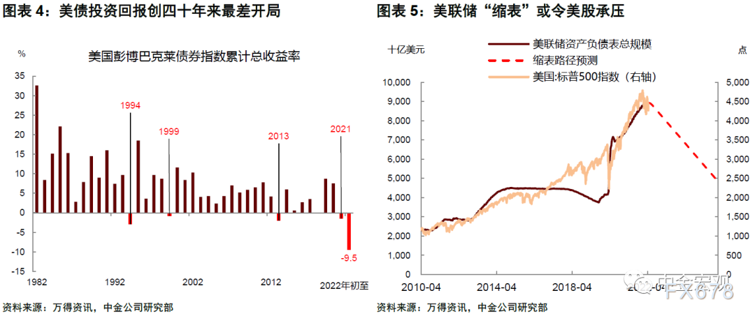 本周美联储将迎来5月议息会议。这次会议背景较为复杂,一方面上周公布的GDP数据不及预期,市场对美国经济放缓的担忧增加。另一方面,鲍威尔十分关注的ECI薪资指数直指历史高位,货币收紧迫在眉睫。在此背景下,我们预计美联储将兑现紧缩承诺,如期宣布加息50个基点并公布“缩表”计划。我们认为相比于加息,市场或许更应该关注缩表,过去两年资产价格大涨与实物通胀都与扩表带来的货币超发有关,而缩表带来的货币数量下降则可能成为未来的隐忧。