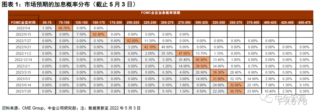 另外需关注鲍威尔是否会考虑一次性加息75个基点。上次3月会议后的发布会上,鲍威尔态度较为温和,当日美股积极反弹,然而好景不长,在接下来的发言中鲍威尔态度迅速转鹰,美股持续受挫。我们猜测鲍威尔是想避免在议息会议这样重要的场合发表过度言论,有照顾市场情绪的成分。不过自此以后,相信市场已有所醒悟,即使这次鲍威尔态度温和,其言论也会被打个折扣。相反,如果鲍威尔延续此前在IMF年会上的态度,甚至如果不正面拒绝一次性加息75个基点的选项,那么将被市场解读为鹰派信号。