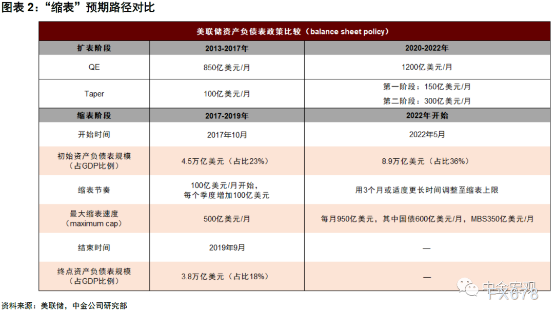 我们认为相比于加息,缩表的不确定性更大,市场可能过于关注加息,从而忽视了缩表的重要性。加息与缩表的本质区别在于,前者是价格工具,后者是数量工具,加息的概率可以由利率市场定价,投资者能实时跟踪加息预期,但缩表却不能,没有一个指标能够清晰地反映出市场对缩表引发的流动性下降的预期。另外过去两年美国金融资产价格大涨,房价与通胀上升,都与货币超发(数量型货币扩张)有紧密联系。如果货币数量开始紧缩,资产价格、房价和通胀都会受到影响。尤其对金融资产价格而言,因为金融市场具有非线性的特征,且容易产生羊群效应,对流动性的边际变化比实物资产要更加敏感。对此投资者应当予以重视,不能简单认为上一轮缩表开始时资产价格表现平稳,这次就可以高枕无忧。