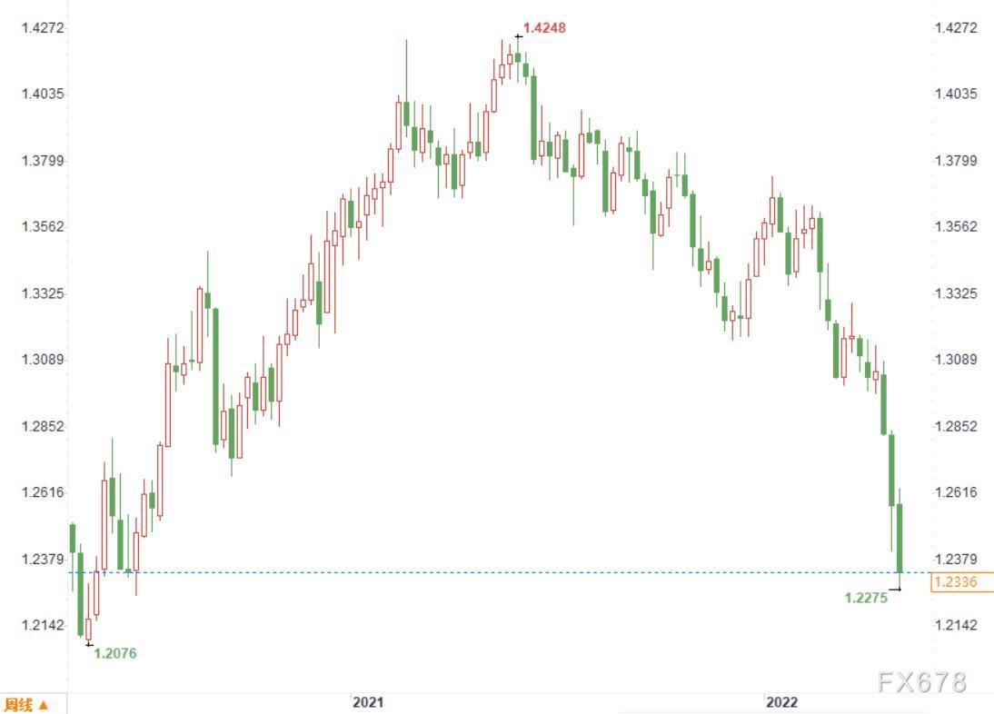 本周英镑兑美元大跌1.91%至1.2336,周五盘中触及1.2275,为2020年6月30日以来最低,分析师称,英国央行短期内控制通胀的信心不足,同时对未来经济前景的忧虑增加,后续通胀降温及经济影响将使英国央行谨慎行事。