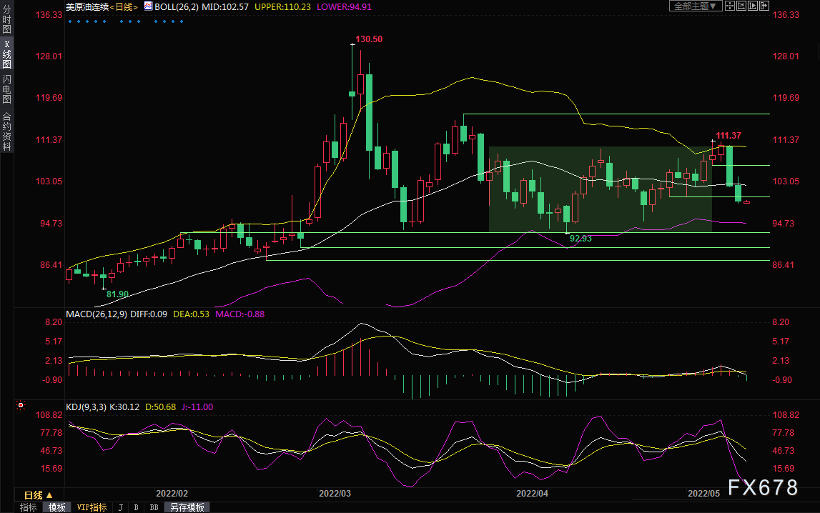 美国原油期货结算价下跌3.33美元,报每桶99.76美元,跌幅3.2%;布伦特原油期货结算价下跌3.48美元,报每桶102.46美元,跌幅3.28%。两大指标均原油连续第二天下跌,且盘中稍早一度下跌逾4美元。