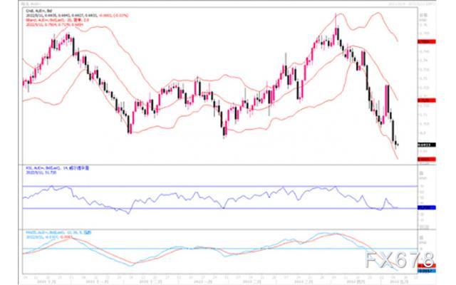 澳元昨日大幅下挫,失守0.7000关口并刷新22个月低位,现汇价交投于0.6980附近。除美元指数在多重利好因素的支撑下刷新20年高位是施压澳元下挫的主要原因外,市场的避险情绪挥之不去,大宗商品原油,铁矿石等价格下挫也是施压商品货币澳元下挫的重要因素。日线图上,澳元兑美元已跌穿0.70整数关口,汇价远低落于各短期均线下方,技术指标向下发散,继续彰显弱势行情。小时图在当前低位区域0.6940附近整理,但反弹意愿不强。由于近期大宗商品价格退潮,须谨防澳元受牵连保持下滑的走势状态。