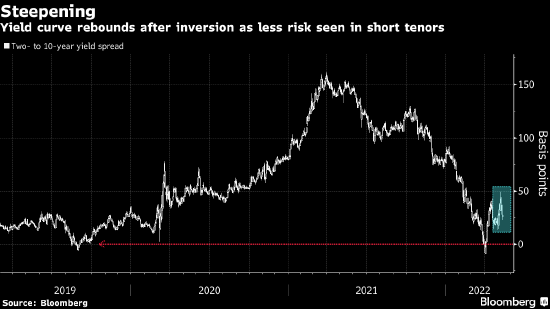周四,2年期和10年期美债收益率之差为28个基点。4月初的时候其一度为负值,是2019年9月以来首次出现这种情况。
