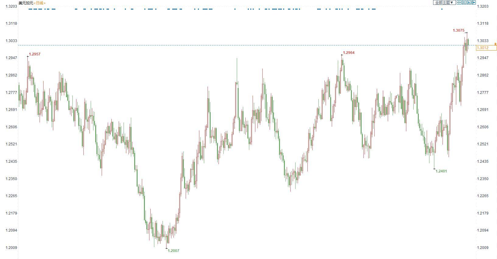 美元兑加元本周维持震荡上升至两年高位,强势美元支持汇价,但加拿大央行加息预期和高油价限制涨幅