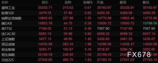 美股收盘情况:标普500指数上涨0.9%,报4479.53点;道琼斯工业平均指数上涨0.6%,报35335.71点;纳斯达克综合指数上涨1.6%,报14942.65点;纳斯达克100指数上涨1.5%,报15312.82点;罗素2000指数上涨1.9%,报2208.296点。