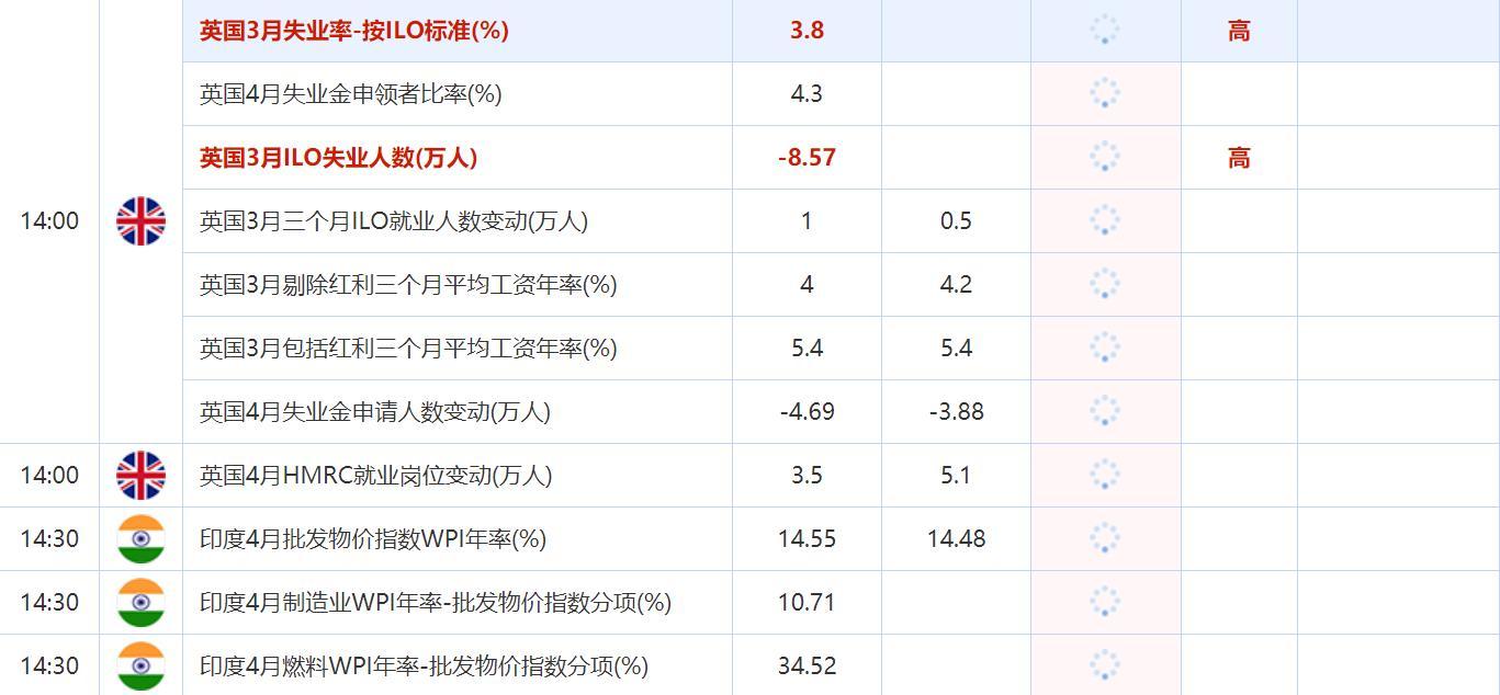 14:00 英国3月失业率-按ILO标准(%) , 前值 3.8 , 预期值 -- , 公布值:待发布
