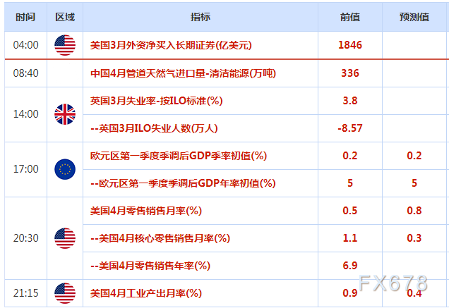 周二(5月17日)亚市盘初,现货黄金震荡微涨,目前交投于1826美元附近,距离隔夜创下的三个半月低点1786.70已经上涨近40美元,美债和美元的回调,给金价提供反弹机会,美元指数目前交投于104.18附近,需要提防汇价的进一步回调风险,日内重点关注有着“恐怖数据”之称的美国零售销售数据;美原油守在隔夜创的近一个半月高点附近,因市场预计中国需求将出现显著复苏,而且库存下降加剧了对供应的担忧,美国汽油期货周一再创纪录新高。