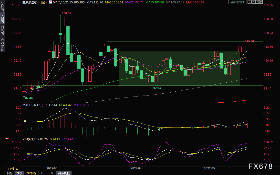 在此之前,布伦特原油触及115.69美元,这是3月28日以来的最高水平。美国原油触及每桶115.56美元,为3月24日以来最高。
