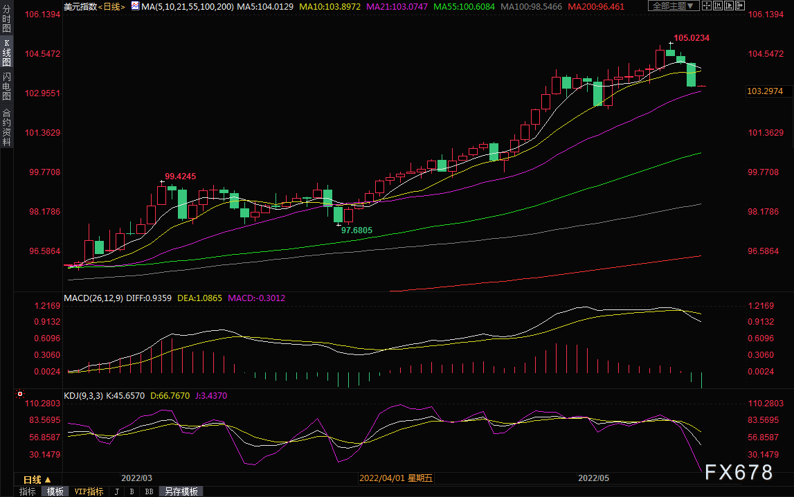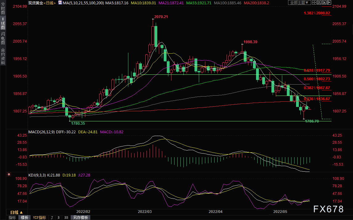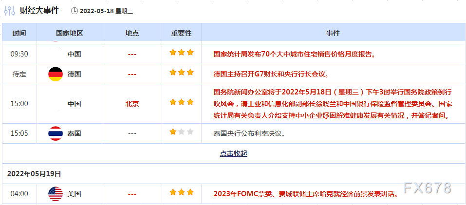 周三(5月18日)亚市盘初,美元指数窄幅震荡,目前交投于103.32附近,距离隔夜创下的一周半新低103.22相去不远,周二全球股市上涨,投资者风险偏好上升削弱了美元的吸引力。现货黄金暂时徘徊于1815附近,周二金价的反弹在200日均线附近受阻,因美联储主席鲍威尔等官员继续强化激进加息预期,而且股市上涨也打压黄金的避险需求。油价周二在触及七周高位后下跌2%,因有消息称,美国将放松对委内瑞拉政府的一些限制。