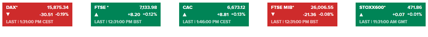 英国富时100指数也上涨0.1%,此前两天小幅上涨,原因是人们对森宝利(Sainsbury)可能的私募股权收购感到兴奋,并缓解了对冠状病毒的担忧。早盘的时候,德国、法国股指小幅走高。截至发稿,走势如图: