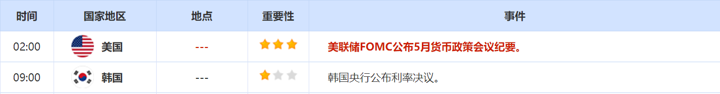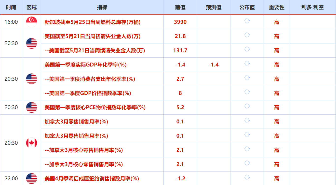 周四(5月26日)关键词:美国截至5月21日当周初请失业金人数,美联储FOMC公布5月货币政策会议纪要