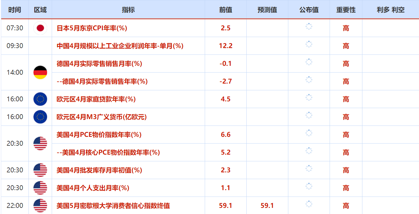 周五(5月27日)关键词:日本5月东京CPI,美国4月PCE物价指数