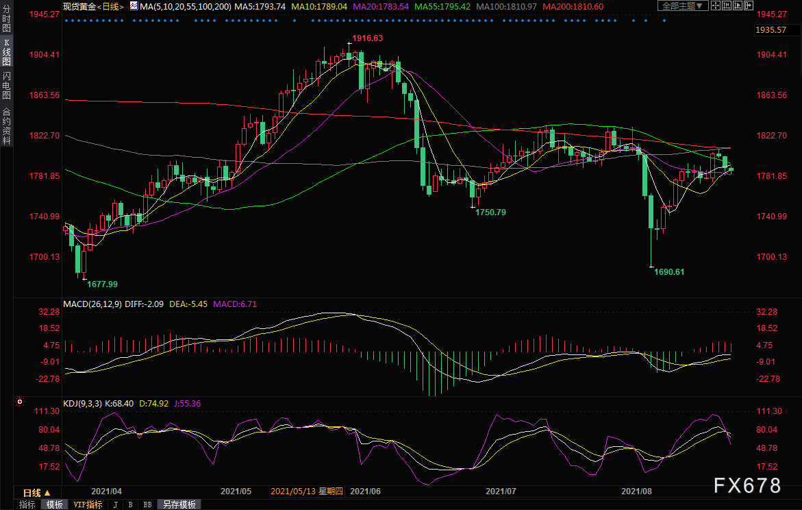 北京时间20:06,现货黄金现报1787.66美元/盎司。