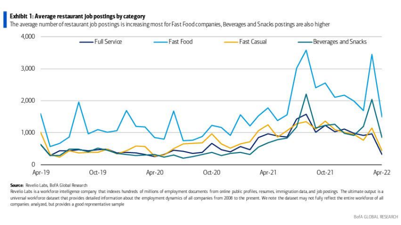 根据Revelio的数据,4月份,新的职位发布减少了200万至660万。这是自2019年5月以来可记录的最大月度跌幅。