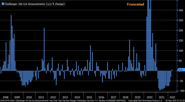 2)挑战者企业裁员指数4月份同比增长6%,这是15个月以来的首次年度增长。