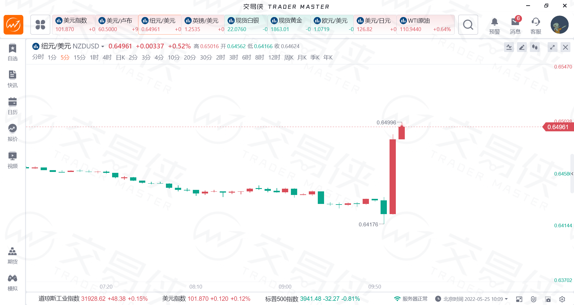 周三,新西兰联储加息50个基点至2%,符合市场预期,为连续第五次加息。新西兰联储利率决议后,纽元兑美元累涨70点,向上触及0.65,为5月5日以来首次。