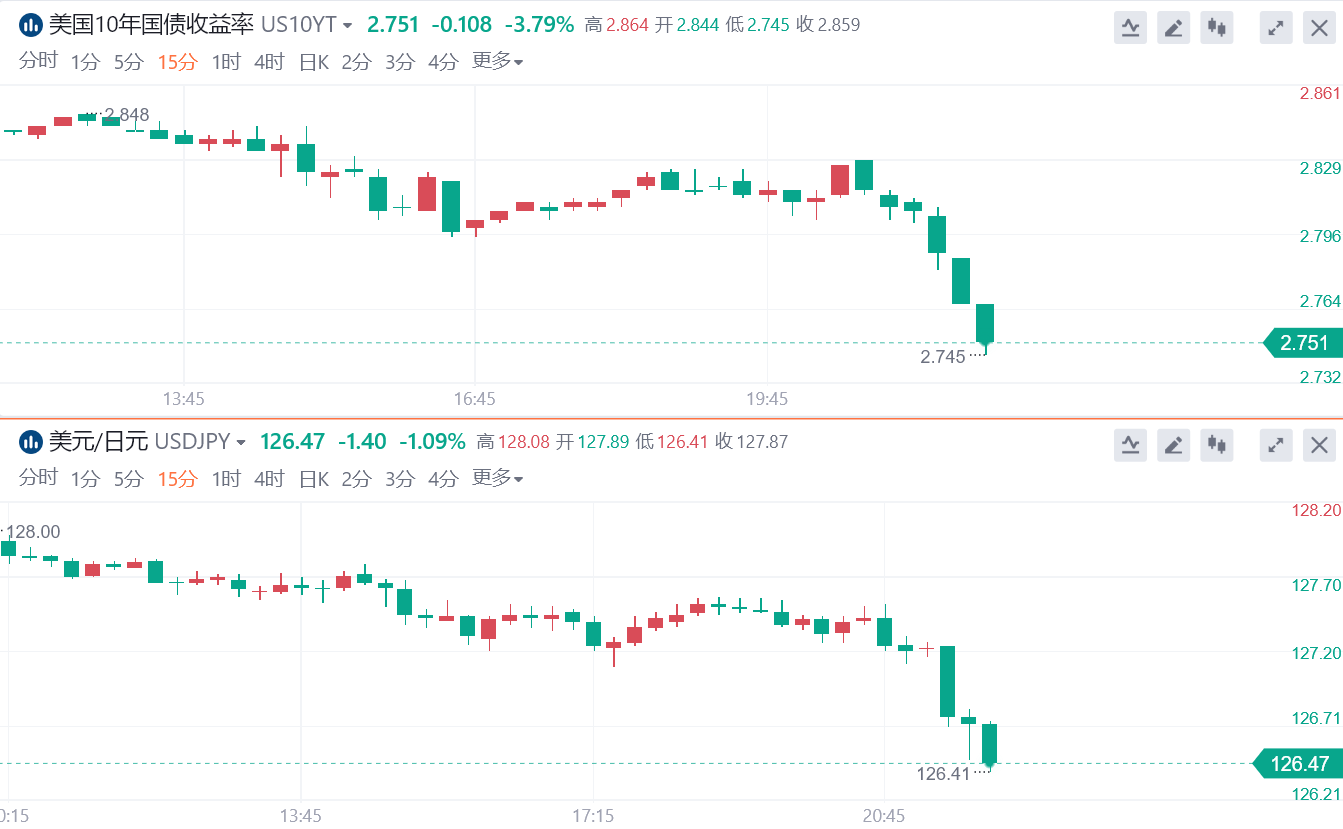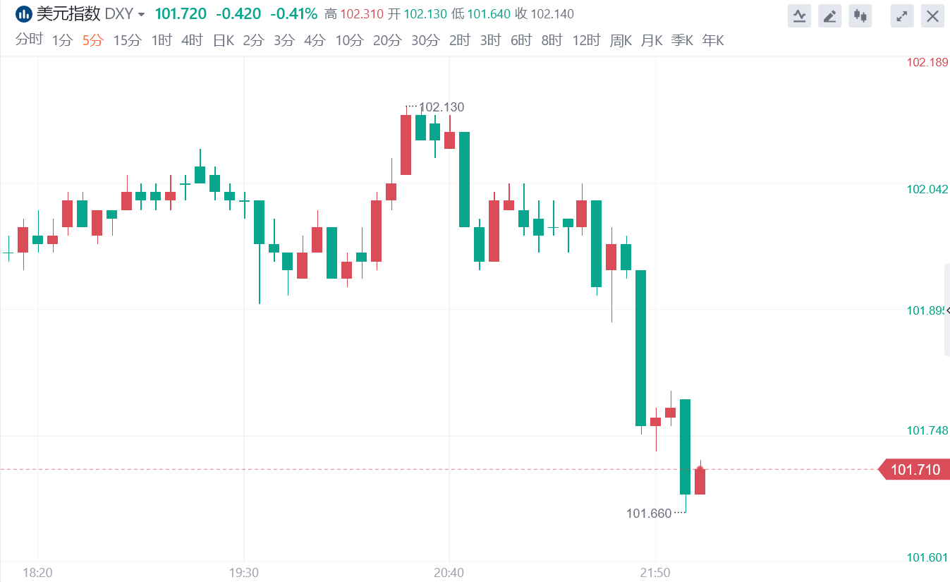 在美股下跌之际,美元指数也因为市场对美国经济衰退的担忧而走软,跌回102关口下方。黄金、日元、美债的避险属性则发挥作用。