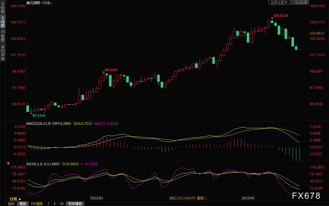数据显示美国5月企业活动放缓,价格上涨冷却了对服务的需求,而中国的疫情封控和乌克兰战争导致的新一轮供应限制阻碍了工厂生产。随后,美元进一步走弱。