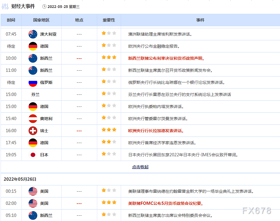 当然,本交易日的重点将是北京时间5月26日凌晨2:00公布的美联储会议纪要,投资者需要重点关注。