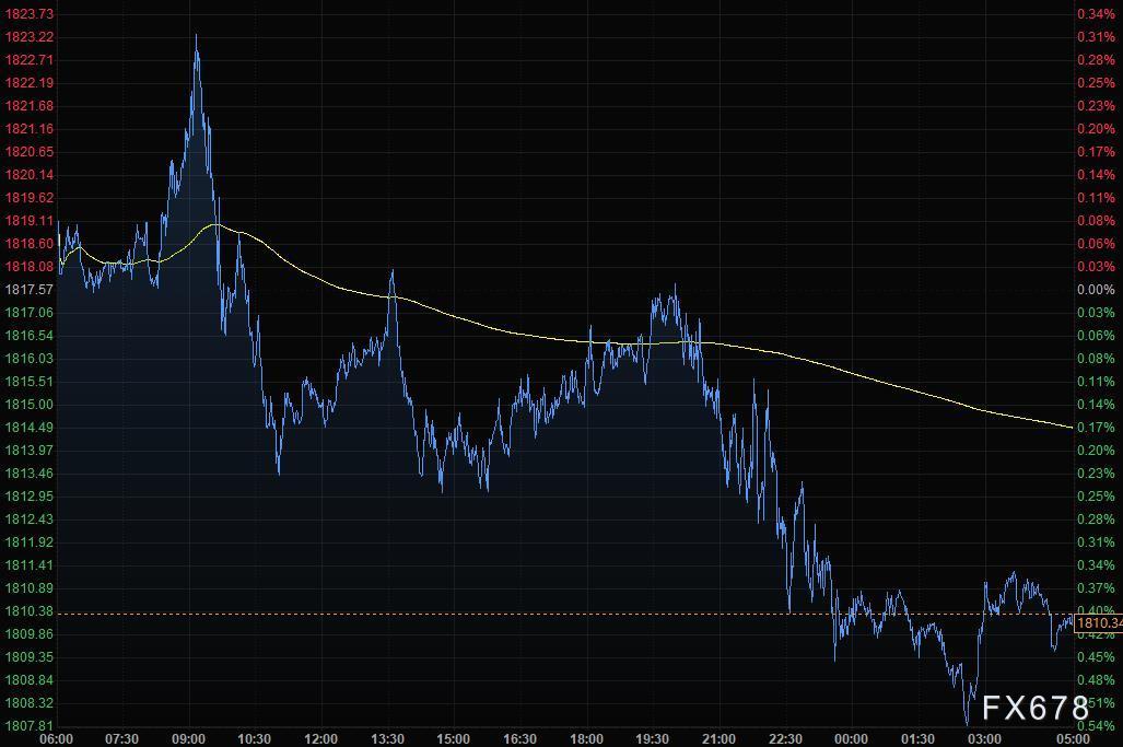 金价周一在触及近四周高位后下滑,现货黄金尾盘收于1810美元附近,稍早曾触及8月4日以来最高水平;美元从低位回升,投资者在本周晚些时候关键美国就业报告发布前态度谨慎。