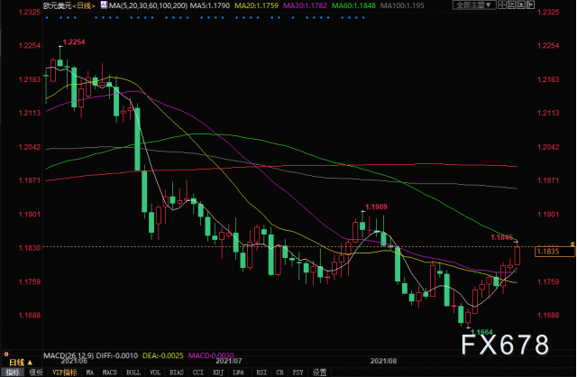 北京时间8月31日20:55,欧元兑美元报1.1835/37。
