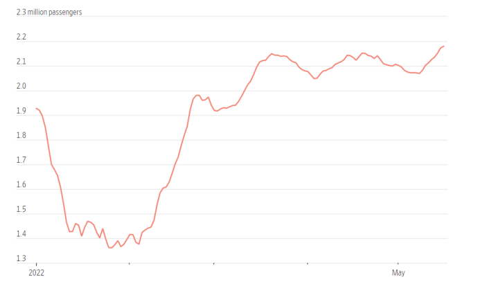 机场检查站的旅客数量(7日移动平均数):