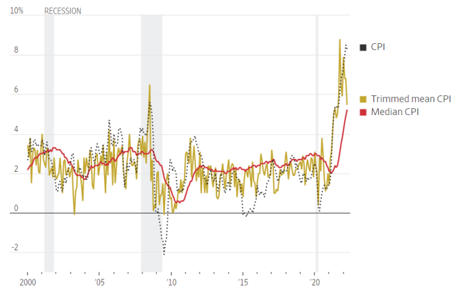 油价或食品价格上涨的这些短期因素,不能反映经济中整体的价格压力。但经济学家们已经研究出能识别整体经济通胀的数据。美国银行GlobalResearch高级美国经济学家AlexLin建议关注克利夫兰联储16%的截尾平均CPI(16%trimmed-meanCPI),该通胀指标剔除了最极端的价格变动,留下了中间大部分的价格变动,这些数据能更好地解释通胀如何形成的。
