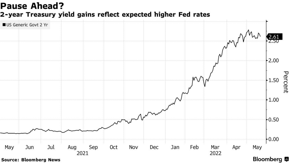瑞穗证券首席美国经济学家StevenRicchiuto则指出,10年期美国国债收益率可被视为未来十年通胀预期。由于对美国经济衰退的担忧日益加剧,10年期美债收益率已从5月9日的峰值3.20%下跌近半个百分点。这或许可能让美联储官员对价格前景感到满意。