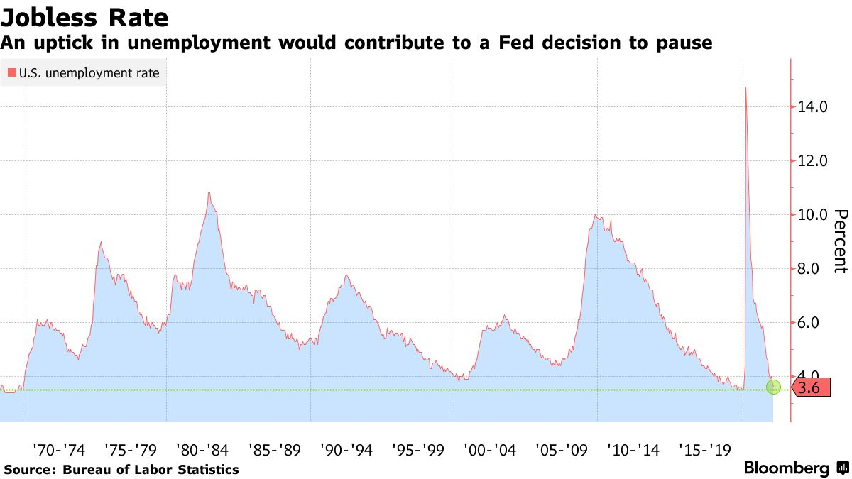 美联储官员曾表示,他们不会对失业率从接近50年低点的3.6%小幅上升感到不安。然而,值得注意的是,由于货币政策的运作具有滞后性,美联储可能会选择在前景尚不完整的情况下暂停加息。