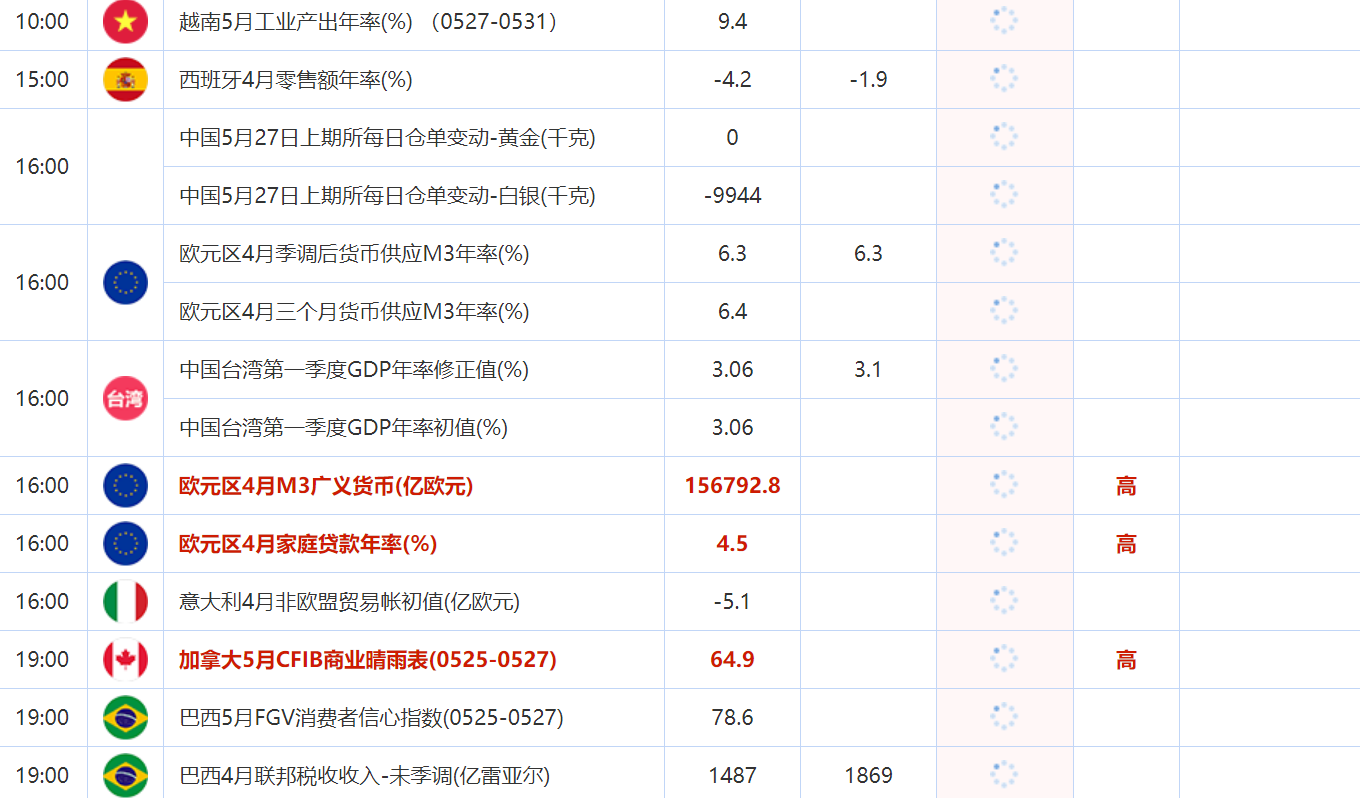16:00 欧元区4月家庭贷款年率(%) , 前值 4.5 , 预期值 -- , 公布值:待发布
