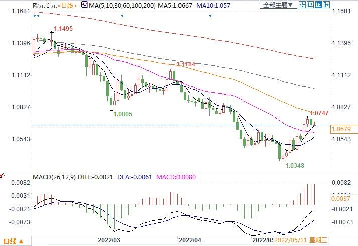 北京时间5月26日13:27 欧元兑美元 报 1.0679