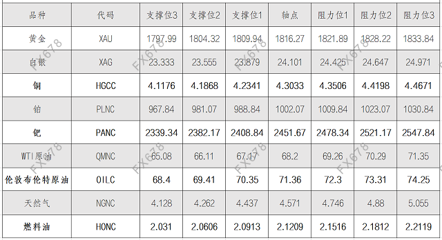 9月2日黄金、白银、原油等商品期货阻力支撑位