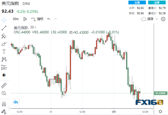 疲弱ADP就业报告降低了市场对非农就业报告和美联储收紧政策的预期,美元指数承压下滑30点,刷新日低至92.38。