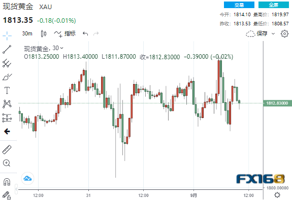 现货黄金短线一度拉升至1819.97美元/盎司高点,但随后很快自高位回落并刷新日低至1808.57美元/盎司,现交投于1813美元/盎司一线。