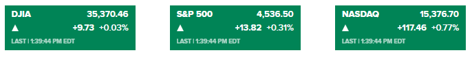 标准普尔500指数上涨0.3%;以科技股为主的纳斯达克综合指数上涨0.8%,创下盘中新高,这要归功于苹果(Apple)股价上涨2%并创下历史新高;道琼斯指数上涨25点。