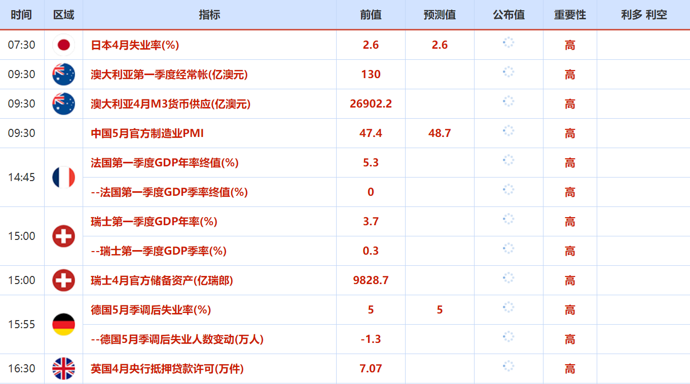 周二(5月31日)关键词:日本4月失业率,欧元区5月调和CPI年率-未季调初值