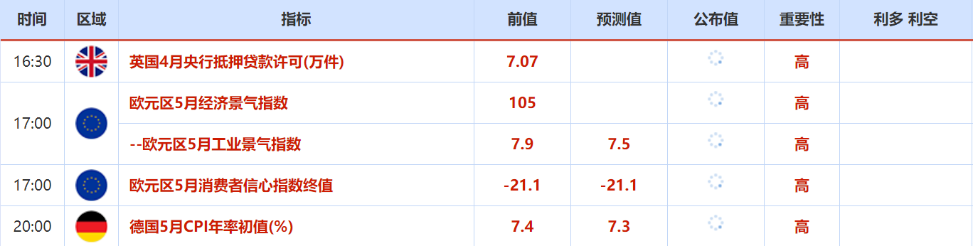 周一(5月30日)关键词:欧元区5月经济景气指数,阵亡将士纪念日,德国5月CPI