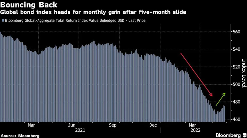 根据彭博编撰的指数,全球投资级债券在5月份的回报率接近1%,料将录得自去年7月以来的首次月线上涨;美国国债预计也将迎来自去年11月以来的最佳月度表现;此外,一项衡量全球企业债务的指标预计将出现去年7月份以来的最大涨幅,而从墨西哥到马来西亚等新兴市场国家的主权债务也普遍呈现涨势。
