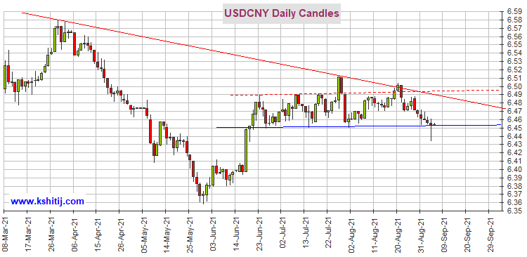 美元/人民币大幅下跌至6.4336,随后反弹。如果维持在6.45上方,那么美元/人民币近期可能会升向6.47/48。