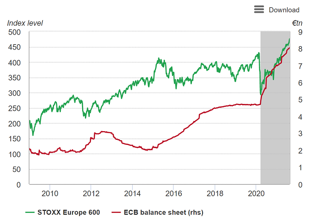 图4:欧洲股市跟踪了欧洲央行资产负债表自PEPP启动以来的增长率