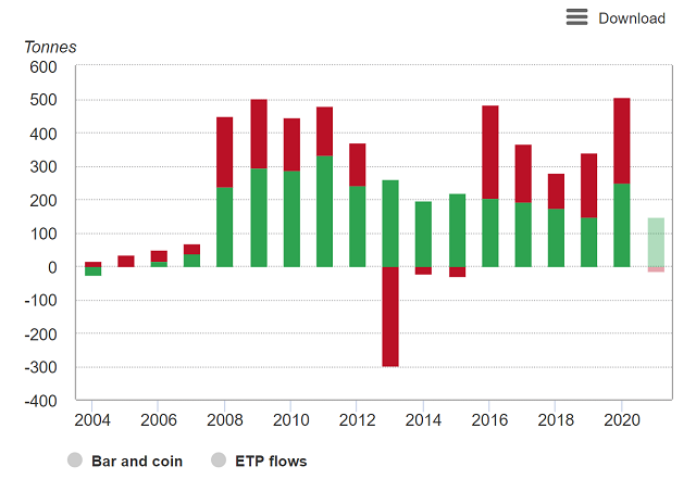 欧洲金条和金币需求和ETP流动*