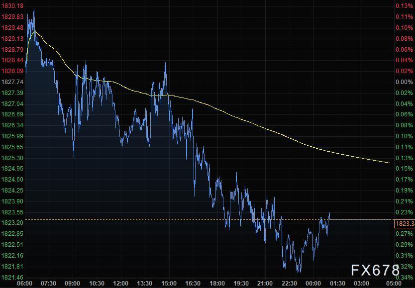 周一现货黄金从七周高点附近小幅回落,截至休市,收于1823.34美元/盎司,因美元自上周五美国非农就业数据公布后创下的低点反弹。