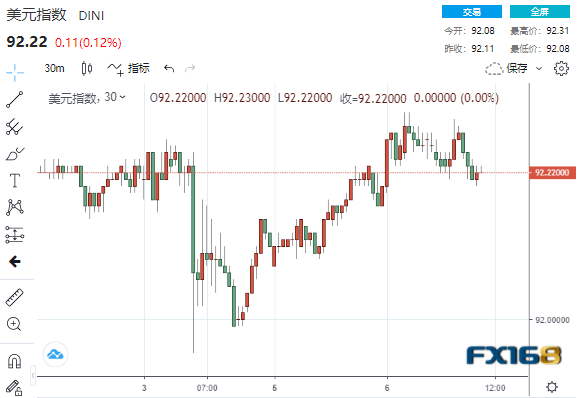 衡量美元兑六种货币汇率的美元指数小幅上涨0.1%,交投于92.22一线,日内在不到25点的窄幅区间内波动。上周五,美元指数自8月4日以来首次跌至91.941,当时备受关注的美国就业报告远逊于预期。