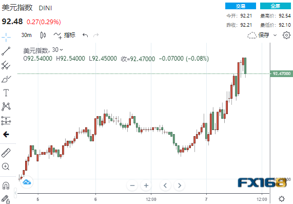 但美元在过去两个交易日谨慎上涨,因美国国债收益率上升打压看跌人气。美市盘中,美元兑一篮子货币持续上涨并将涨幅扩大至0.3%,最高触及92.54,较日低拉升44点。
