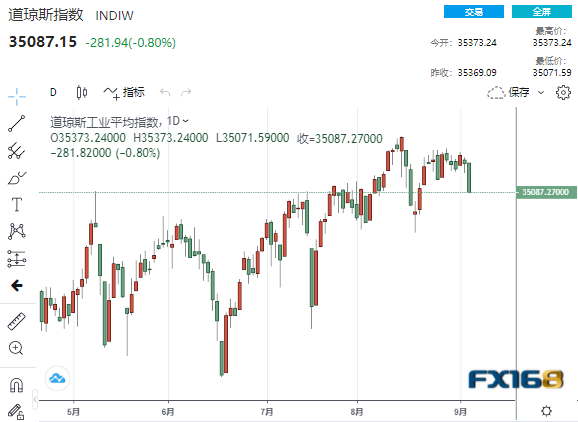周二(9月7日)美市盘中,随着交易员从劳工节长周末归来,金融市场掀起一阵腥风血雨:美元指数随着美债收益率攀升而强势上扬,日内最高触及92.54,较日低拉升超40点;美元指数和美债收益率上涨增加了持有无息黄金的机会成本,现货黄金大跌35美元,直逼1790美元关口,白银、钯金和铂金也纷纷下挫:受delta变种蔓延拖累经济增长忧虑拖累,美股三大股指齐跌,其中道指下跌300点或0.8%;就在萨尔瓦多首日采用比特币作为法定货币之际,比特币和以太坊遭遇猛烈抛售,大跌逾15%。