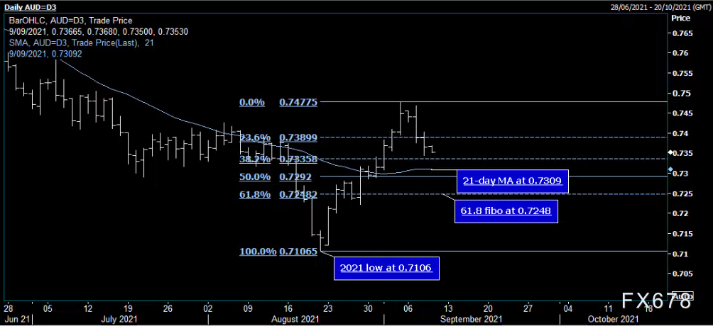 上行方面,初步阻力在5日均线0.7402,突破5日均线则看向7月2日低位0.7445及9月3日高位0.7478。