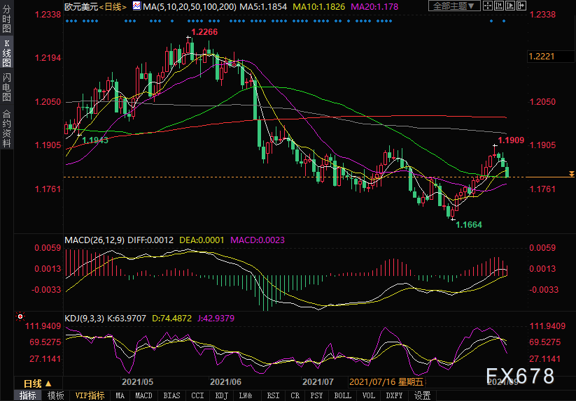 欧元兑美元本周下行趋势保持不变,尽管似乎仍难以跌破周三的关键支撑位1.1800。