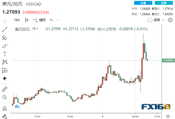 利率决议公布之后,美元/加元短线急涨近120点,随后自高位回落。