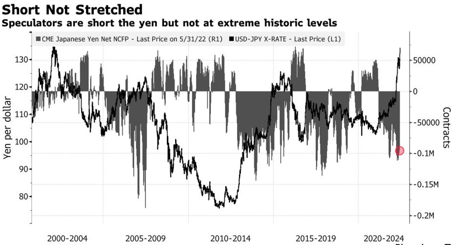 投机者正聚集在受困的日元周围,且仓位并未扩大,鸽派的日本央行政策暗示空头仍有入场空间。